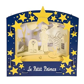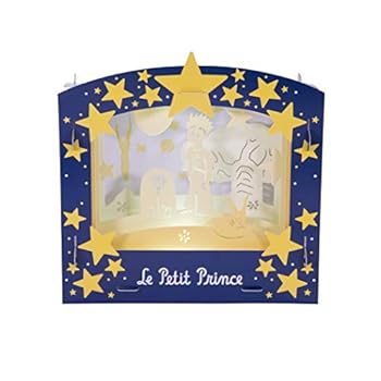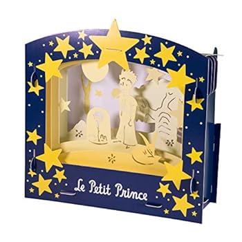 Un cadeau poétique : un magnifique théâtre d'ombres à contempler et un livre à lire avant de s'endormir ! Beau coffret à couvercle cloche réutilisable 30 x 30 x 4 cm décor Petit Prince A l'intérieur : - Des planches en carton épais prédécoupé pour monter un décor - format monté 29 x 29 x 11 environ - Une lampe "push light" à piles*. (IL suffit d'appuyer dessus pour l'allumer ou l'éteindre). - Un livre de 24 pages Le petit Prince pour les enfants pour découvrir l'histoire du Petit Prince. Principe : quand ils sont éclairés, les différents panneaux du décor créent de la profondeur et des ombres projetées La boîte sera recouverte d'un grand bandeau avec toutes les informations produit et sera filmée à l'unité. *non fournies