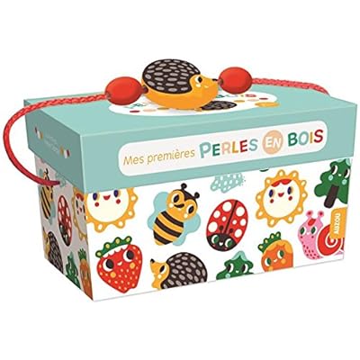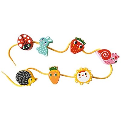 Ce joli coffret propose 15 grosses perles trouées en bois ainsi que 2 lacets. L'enfant découvre des formes simples et des objets du quotidien et peut exercer sa dextérité à l'aide des lacets à enfiler dans les perles.