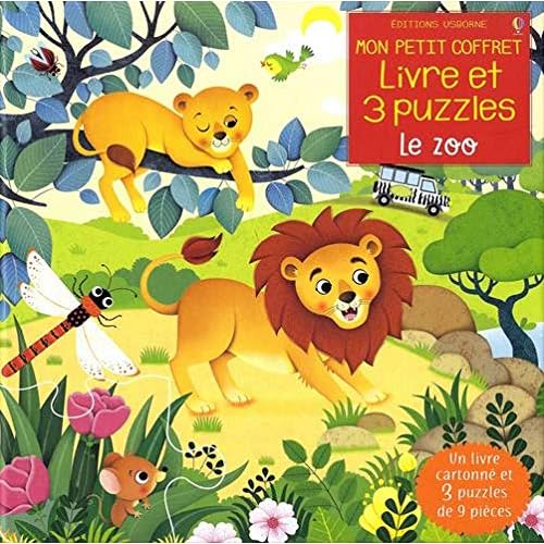Ce coffret contient un livre cartonné et trois petits puzzles de 9 pièces chacun pour reconstituer des scènes du livre représentant les animaux d'un zoo. Les jeunes enfants trouveront dans ce coffret un livre cartonné très coloré illustrant la vie d'un zoo, accompagné de trois petits puzzles de 9 pièces chacun pour reconstituer de jolies scènes imagées représentant les animaux du livre.
