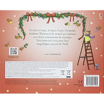 • Un charmant livre musical aux superbes illustrations qui évoquent parfaitement la magie de Noël.• Un groupe d'animaux musiciens répètent un concert de Noël dans un bois enneigé. • En appuyant sur les boutons sonores au fil des pages, l'enfant entend chaque instrument séparément : les percussions de la taupe et du lapin, la trompette de l'ours, la flûte de l'écureuil, la harpe du blaireau et le violon du renard. En appuyant sur le dernier bouton, il les entendra tous ensemble. • Une excellente initiation au son de différents instruments. • Un beau cadeau de Noël pour les jeunes enfants.