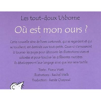 toujours aussi sympa dans la même lignée. Mon fils (10 mois) en a déjà 3 dans cette collection et ne se lasse pas de toucher toutes les textures et tourner les pages cartonnées.